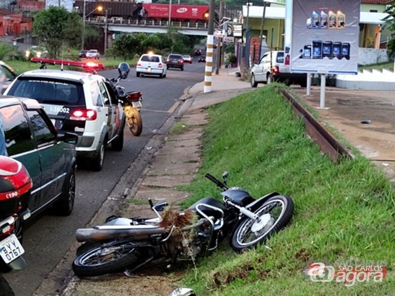 Um adolescente de 16 anos sofreu uma fratura no fêmur após um acidente na noite deste sábado (23), na avenida Tancredo Neves, próximo ao shopping.