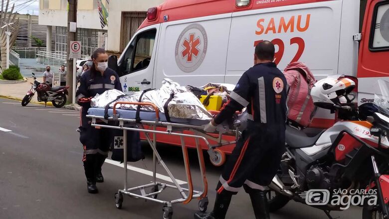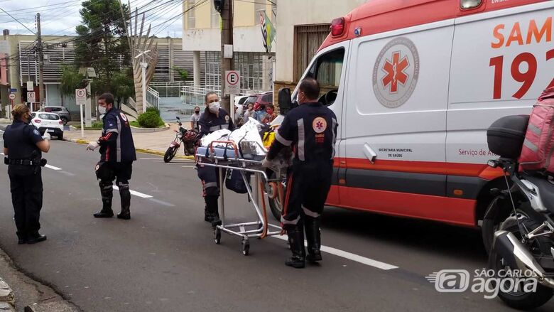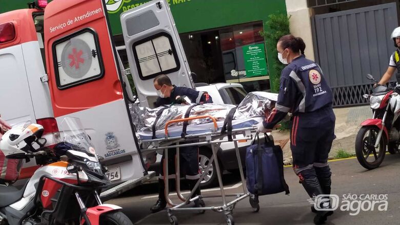 Mulher quando era atendida pela USA: com traumatismo craniano, socorrida à Santa Casa - Crédito: Maycon MaximinoUma mulher sofreu traumatismo craniano na manhã desta quinta-feira, 16, após queda de bicicleta na rua Episcopal, em frente a Prefeitura Municipal, no centro.