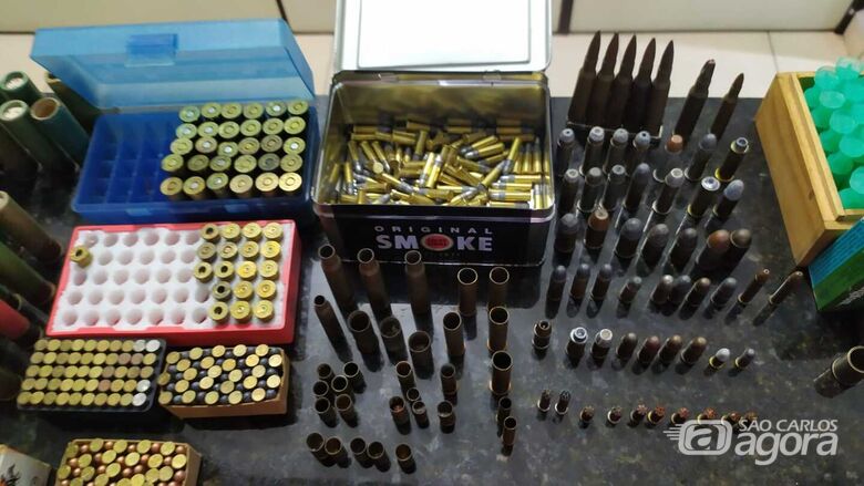 Foram localizadas munições de calibre 38, 32, 22, 44, 36, 45, fuzil 762, entre outras. A arma e todo o material foi apreendido e apresentado no plantão policial.