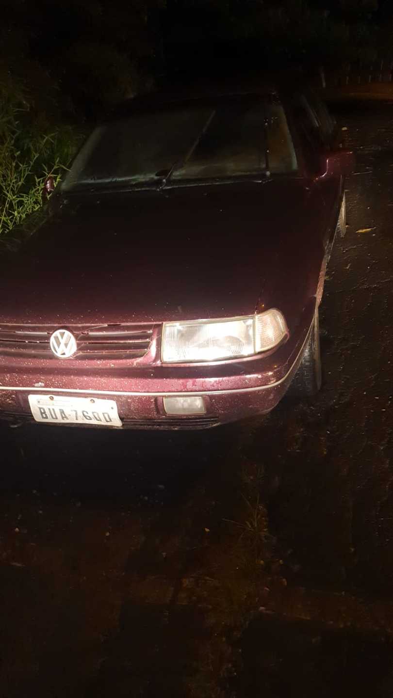 Policiais militares realizavam um patrulhamento pelo São Carlos 8, quando avistaram o carro abandonado próximo a uma mata, na Rua Aida Cely Corsini Vemtura de Medeiros, verificando que ele havia sido furtado e que estava faltando o estepe e o som.
