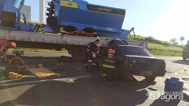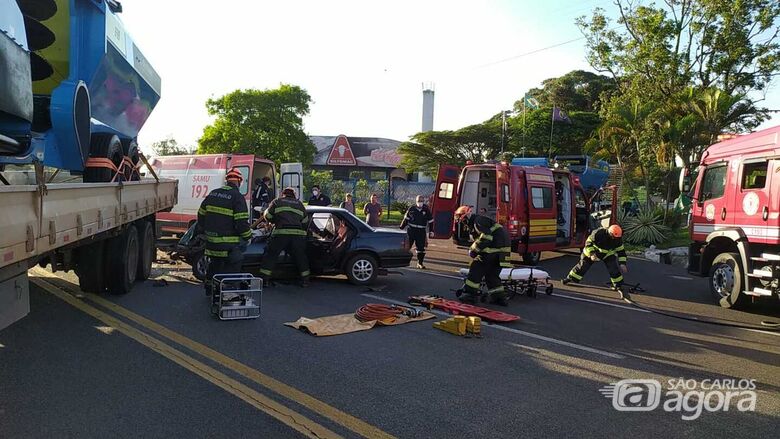 Segundo as primeiras informações, um caminhão carregado com equipamentos agrícolas saia de uma empresa e ao ingressar na rodovia foi atingido por um Monza que transitava no sentido Descalvado.