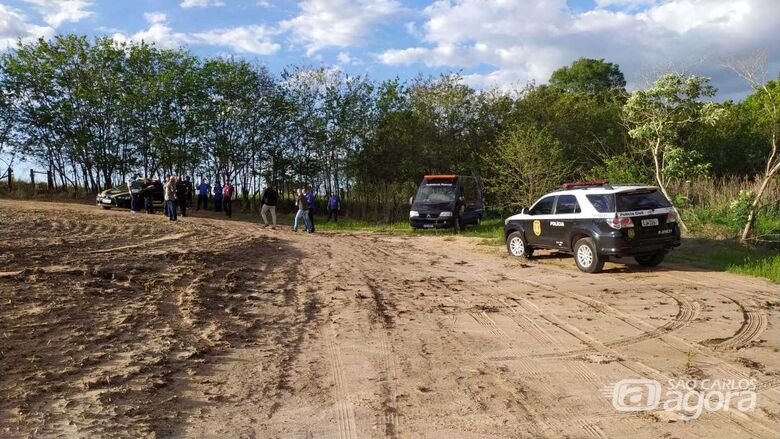 Local onde o corpo foi encontrado - Crédito: Maycon MaximinoO corpo de um homem foi localizado na tarde desta quarta-feira (3), na área rural de Ibaté. No pescoço da vítima que estava parcialmente enterrada havia um fio enrolado.