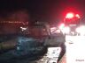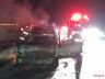 Um veículo foi destruído pelo fogo nesta noite de quarta-feira (12) na rodovia Washington Luís (SP-310).