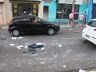 Pedaços de vidro foram arremessados à distância, atingindo lojas e carros na proximidade.