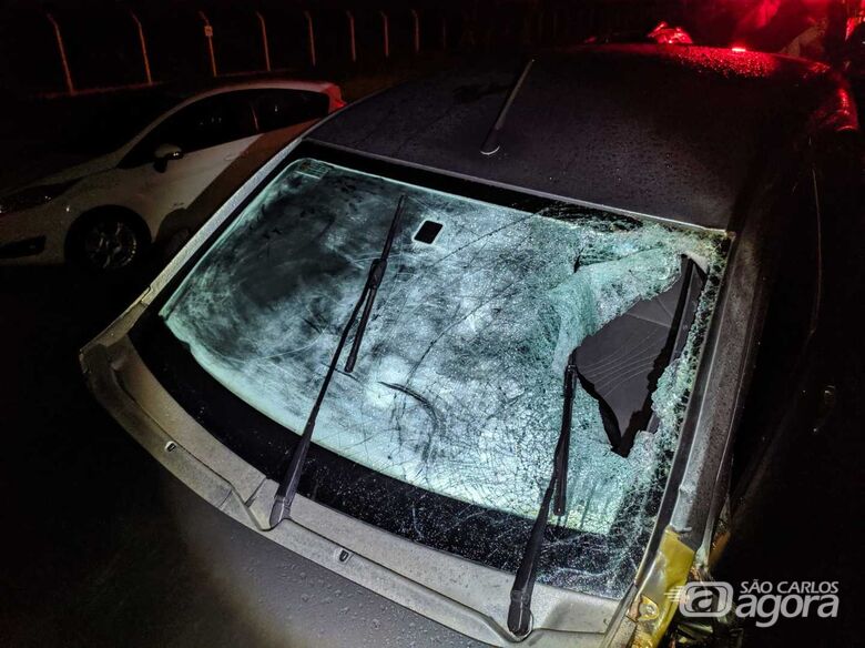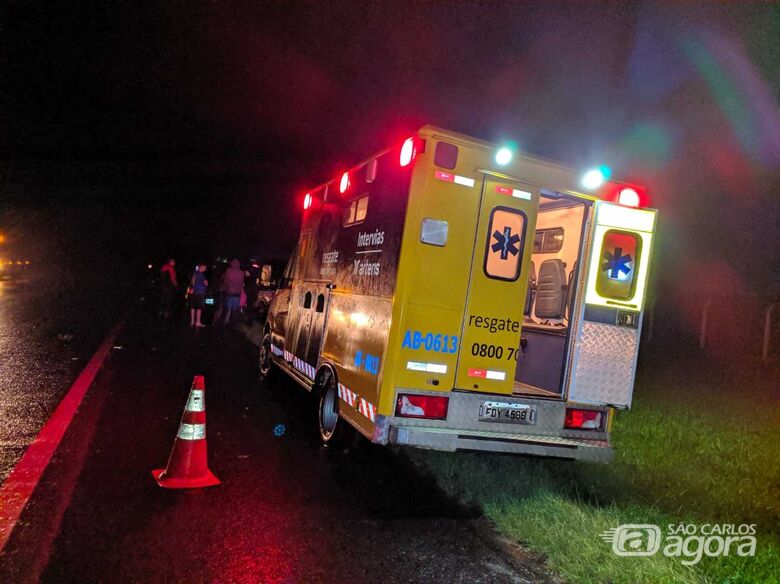 De acordo com D.I.I., 26 anos, que conduzia o carro, ele seguia no sentido Aparecidinha - São Carlos e no Km 140 um motociclista que transitava no sentido oposto invadiu o seu lado da pista, colidindo frontalmente. Chovia forte no momento do acidente.
