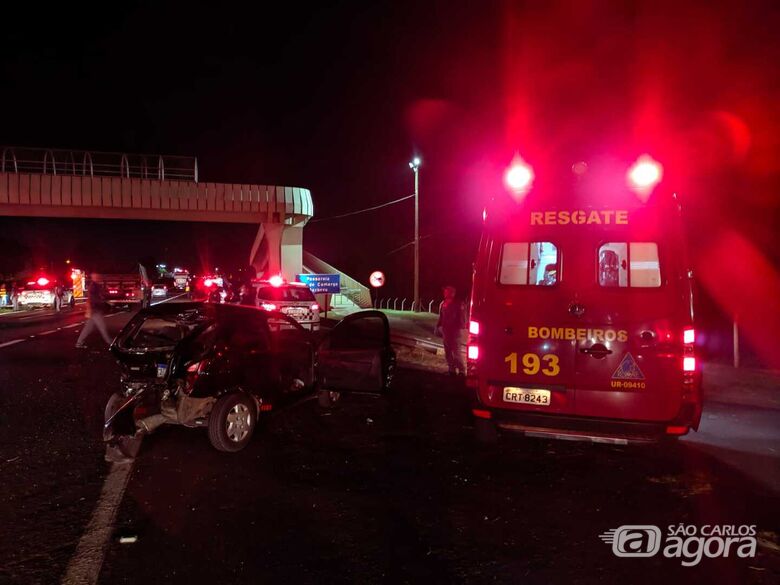 Movimentação no local - Crédito: Maycon MaximinoUma perseguição policial a um veículo roubado na cidade de Rio Claro/SP, na noite desta quinta-feira (19) terminou com um grave acidente em São Carlos. Um motociclista foi socorrido com ferimentos graves e uma mulher também precisou de atendimento médico.