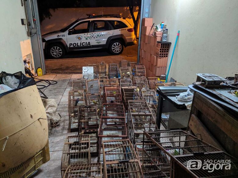 Após denúncia da criação de pássaros em um bar, policiais ambientais foram averiguar e encontraram 32 pássaros nativos das espécies Trinca Ferro, Azulão, Canário da Terra, Coleirinha, Tico tico e Curió, além de 24 Canários do Reino, que são exóticos.