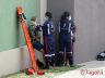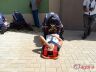 A condutora foi parar a motocicleta e ao bater na sarjeta acabou caindo.