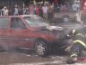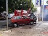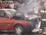 Eram por volta de 16h00 quando a mulher seguia com seu Fiat Uno vermelho pela rua XV de Novembro e quando estava próxima da Praça da XV inciou-se o incêndio no veículo.
