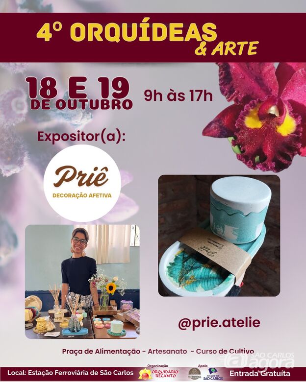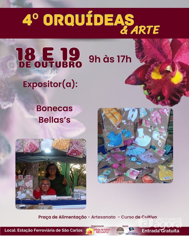 Nos dias 18 e 19 de outubro, das 9h às 17h, a Estação Ferroviária de São Carlos será palco do 4º Orquídeas & Arte, um evento que promete encantar os visitantes com flores, artesanato, gastronomia e conhecimento.