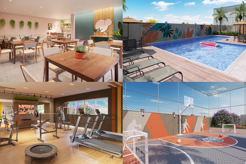 Entre as opções de lazer, destaque para as piscinas adulto e infantil, salão de festas climatizado, espaço fitness com equipamentos semiprofissionais e miniquadra.