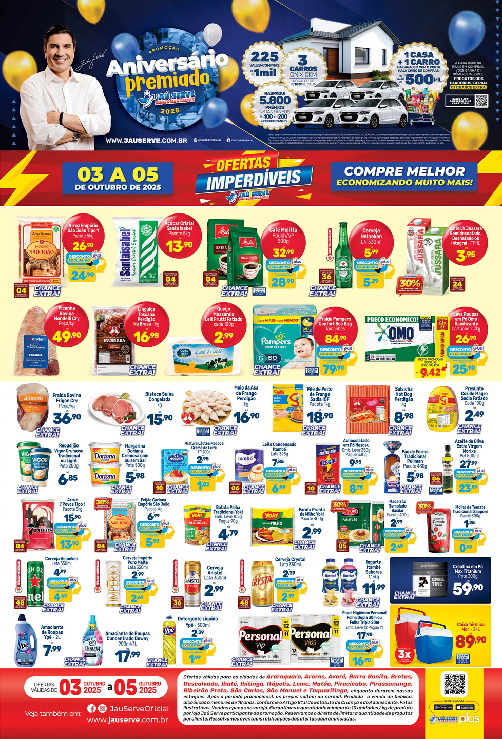 Supermercado Jaú Serve - Crédito: divulgação Leia TambémPublieditorial07h20 - 12 Dez 2025Confira as ofertas do supermercado Jau ServeSesc São Carlos07h41 - 10 Dez 2025Tudo o que você precisa saber sobre a credencial ou carteirinha do SescOportunidade19h55 - 09 Dez 2025Magazine Luiza oferece IPhone a partir de R$159 por mês nesta quarta-feiraPublieditorial08h49 - 05 Dez 2025Confira as ofertas do supermercado Jaú ServePublieditorial16h45 - 04 Dez 2025Ibaté recebe tradicional Megafeirão de VeículosÚltimas Notícias