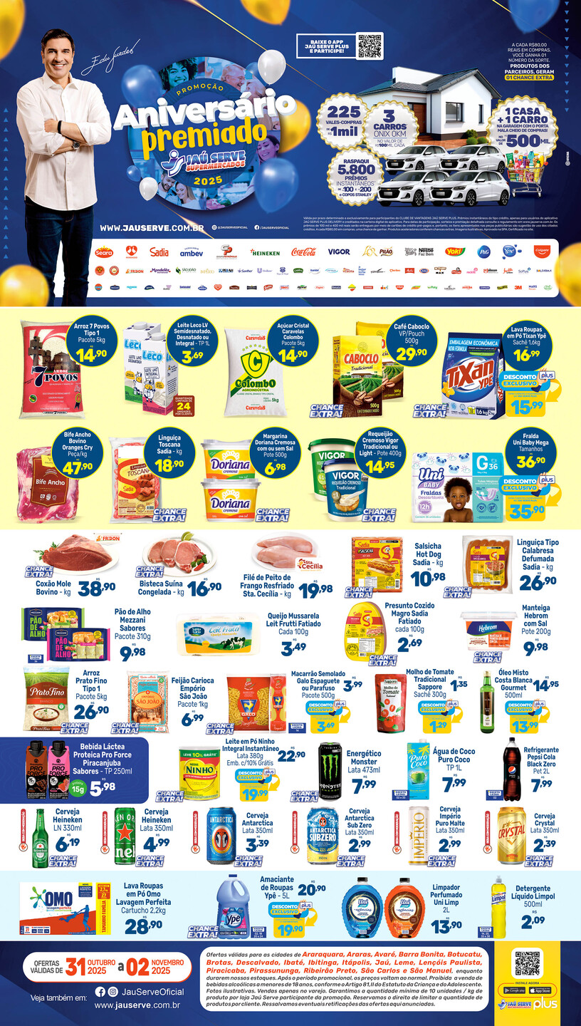 Supermercado Jaú Serve - Crédito: divulgação Leia TambémPublieditorial17h02 - 07 Nov 2025Aproveite as ofertas de Black no Dia de Ouro Black do Magalu neste sábadoPublieditorial07h10 - 07 Nov 2025Confira as ofertas do supermercado Jaú ServeLançamento11h40 - 06 Nov 2025Altanere, o novo empreendimento da Vitta na Vila NeryPublieditorial07h17 - 04 Nov 2025Confira as ofertas do supermercado Jaú ServeDesconto imperdível10h00 - 03 Nov 2025Barak Barbearia comemora 1 ano com festa, música ao vivo, food truck e descontos especiaisÚltimas Notícias