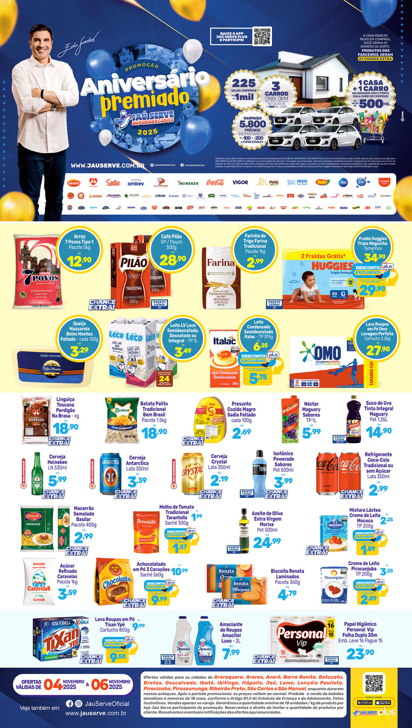 Supermercado Jaú Serve - Crédito: divulgação Leia TambémPublieditorial07h10 - 07 Nov 2025Confira as ofertas do supermercado Jaú ServeDesconto imperdível10h00 - 03 Nov 2025Barak Barbearia comemora 1 ano com festa, música ao vivo, food truck e descontos especiaisO retorno11h56 - 31 Out 2025Eles voltaram: A Cúpula retorna em nova era com show de NOG no dia 08 de novembroPublieditorial07h59 - 31 Out 2025Confira as ofertas do supermercado Jaú ServePublieditorial17h30 - 29 Out 2025A FEVER, o maior cover de Aerosmith do Brasil, se apresenta em São CarlosÚltimas Notícias
