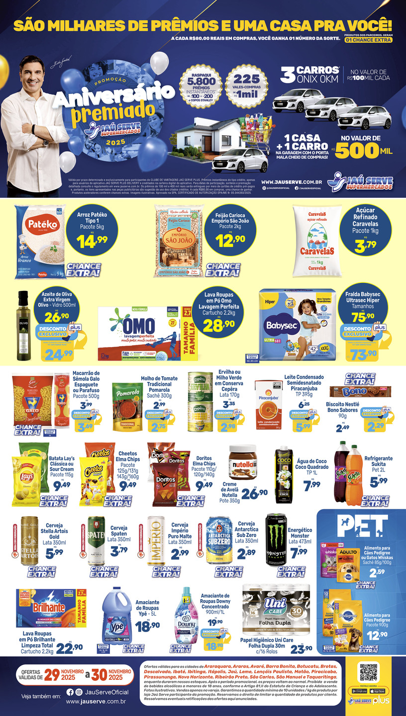 Supermercado Jaú Serve - Crédito: divulgação Leia TambémPublieditorial16h45 - 04 Dez 2025Ibaté recebe tradicional Megafeirão de VeículosA melhor comida caseira da região09h04 - 03 Dez 2025Restaurante Planalto anuncia novidades e inclui sorvetes no buffet completoCelebração especial11h28 - 02 Dez 2025Sambini Sorvetes celebra 1 ano na Carlos Botelho com festa especial nesta quarta-feiraPublieditorial07h36 - 02 Dez 2025Confira as ofertas do supermercado Jaú ServeO maior evento do ano10h04 - 28 Nov 2025Super Saldão prepara megaevento com Aniversário, Black Friday e Feirão em São CarlosÚltimas Notícias