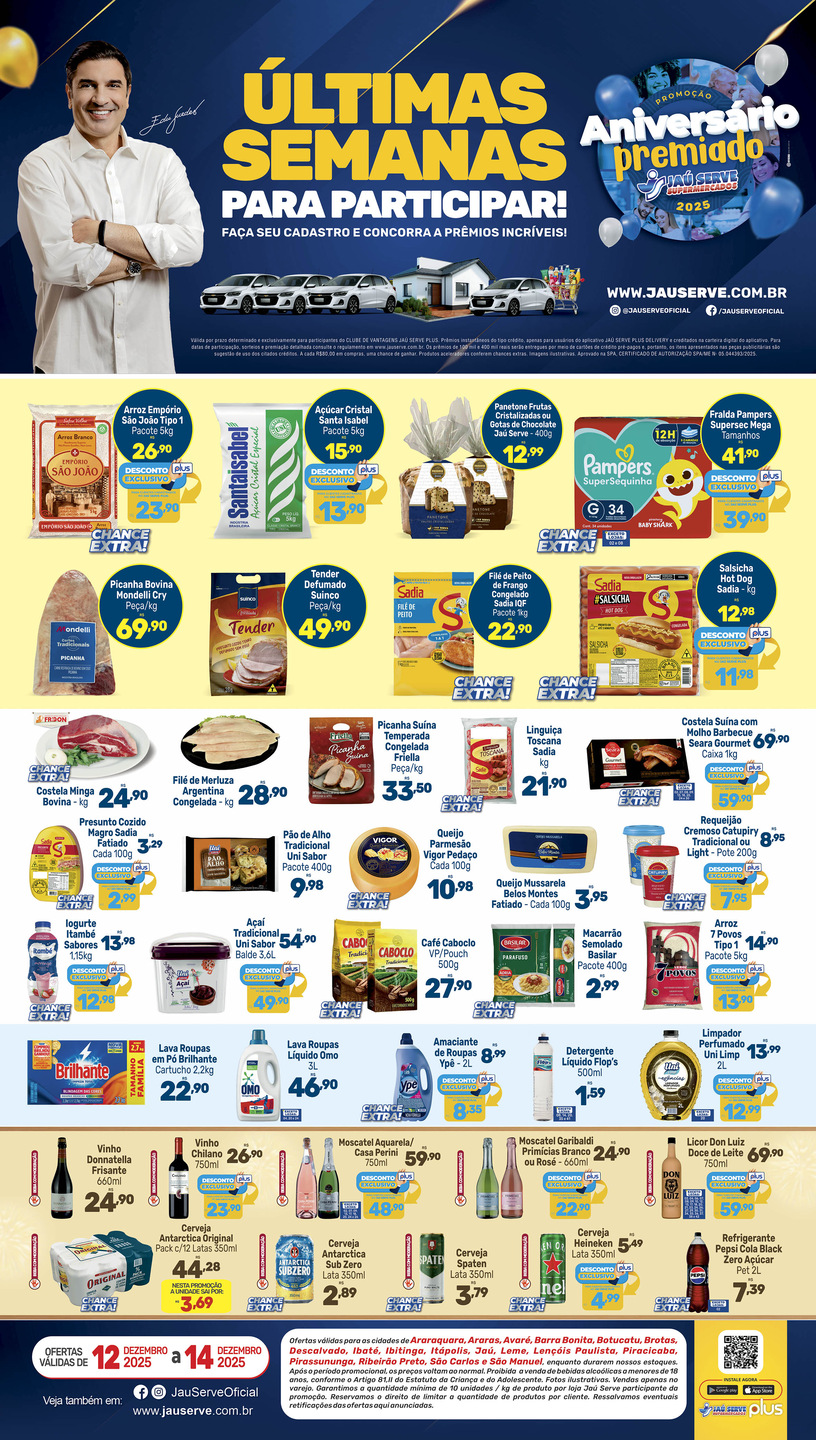 Supermercado Jaú Serve - Crédito: divulgação Leia TambémSesc São Carlos07h41 - 10 Dez 2025Tudo o que você precisa saber sobre a credencial ou carteirinha do SescOportunidade19h55 - 09 Dez 2025Magazine Luiza oferece IPhone a partir de R$159 por mês nesta quarta-feiraPublieditorial08h49 - 05 Dez 2025Confira as ofertas do supermercado Jaú ServePublieditorial16h45 - 04 Dez 2025Ibaté recebe tradicional Megafeirão de VeículosA melhor comida caseira da região09h04 - 03 Dez 2025Restaurante Planalto anuncia novidades e inclui sorvetes no buffet completoÚltimas Notícias