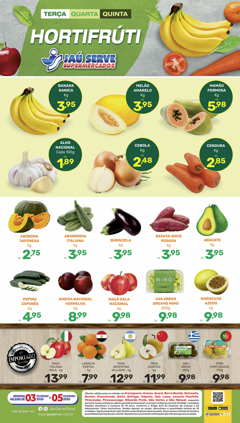 Supermercado Jaú Serve - Crédito: divulgação Leia TambémReferência14h35 - 30 Jan 2026Ambiental Podas se destaca em São Carlos pela atuação técnica e poda responsávelPublieditorial08h25 - 30 Jan 2026Confira as ofertas do supermercado Jaú ServeOportunidade13h30 - 29 Jan 2026São Carlos Ambiental promove neste sábado Feirão de Empregos com vagas para Coletor de ResíduosOportunidade13h10 - 29 Jan 2026Engemasa abre vaga para Operador de Centro de Usinagem CNCPublieditorial07h34 - 27 Jan 2026Confira as ofertas do supermercado Jaú ServeÚltimas Notícias