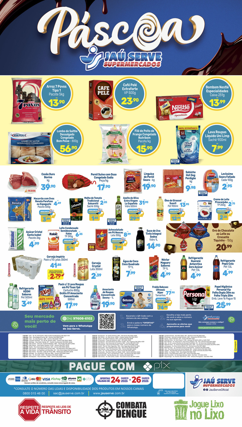 Supermercado Jaú Serve - Crédito: divulgação Leia TambémPublieditorial08h29 - 23 Mar 2026Páscoa solidária mobiliza doações para crianças em São Carlos Oportunidade13h22 - 20 Mar 2026Colégio Jardim da Criança abre matrÃculas com condições especiais em marçoPublieditorial08h48 - 20 Mar 2026Confira as ofertas do supermercado Jaú Serve neste final de semanaPublieditorial08h49 - 17 Mar 2026Confira as ofertas do supermercado Jaú ServeConheça14h36 - 13 Mar 2026Mofo e umidade em casa ou na empresa? Empresa de São Carlos tem a soluçãoÚltimas NotÃcias