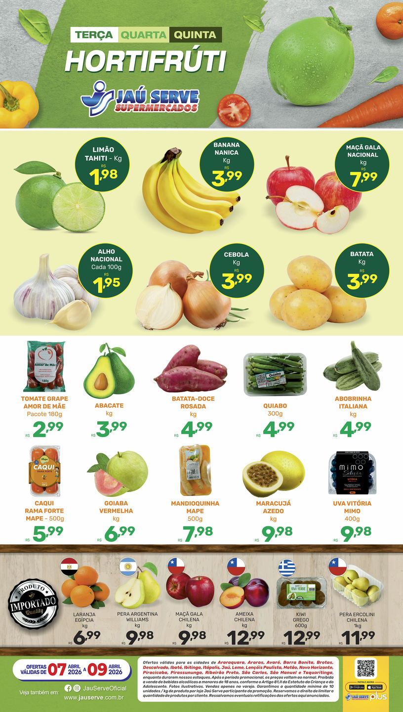 Supermercado Jaú Serve - Crédito: divulgação Leia TambémPublieditorial10h07 - 04 Abr 2026Centro Esportivo Multi Esporte presente em eventos importantes nesta semanaPublieditorial07h42 - 03 Abr 2026Confira as ofertas do supermercado Jaú ServePublieditorial07h38 - 31 Mar 2026Confira as ofertas do supermercado Jaú ServeLançamento 19h32 - 27 Mar 2026Região do Eduardo Abdelnur ganhará novo loteamento em brevePublieditorial08h41 - 27 Mar 2026Confira as ofertas do supermercado Jaú ServeÚltimas Notícias