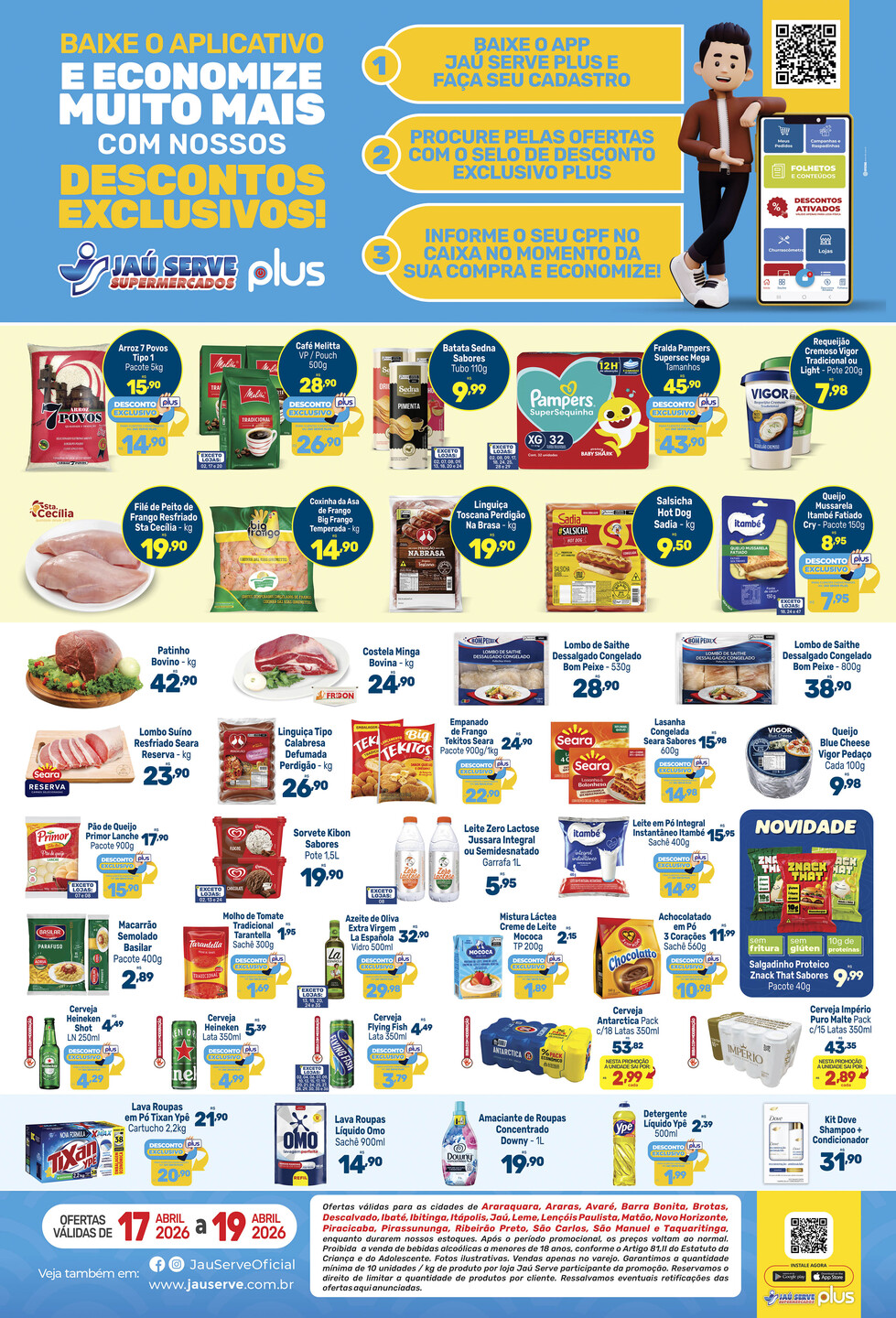 Supermercado Jaú Serve - Crédito: divulgação Leia TambémEvento imperdível11h10 - 16 Abr 2026É neste sábado: Festa do Branco Edição Retrô 2026 revive grandes sucessos dos anos 70, 80 e 90Delícias doces10h58 - 16 Abr 20261º Festival de Fatias de Bolo acontece no dia 21 de abril e promete adoçar a tarde em São CarloEncontro online gratuito07h55 - 15 Abr 2026Oportunidade para educadores: especialistas debatem estratégias para lidar com TEA e TDAH em sala de aula123 anos de história12h50 - 14 Abr 2026Sicredi consolida atuação em São Carlos e ultrapassa 10 milhões de associadosPublieditorial08h01 - 14 Abr 2026Confira as ofertas do supermercado Jaú ServeÚltimas Notícias