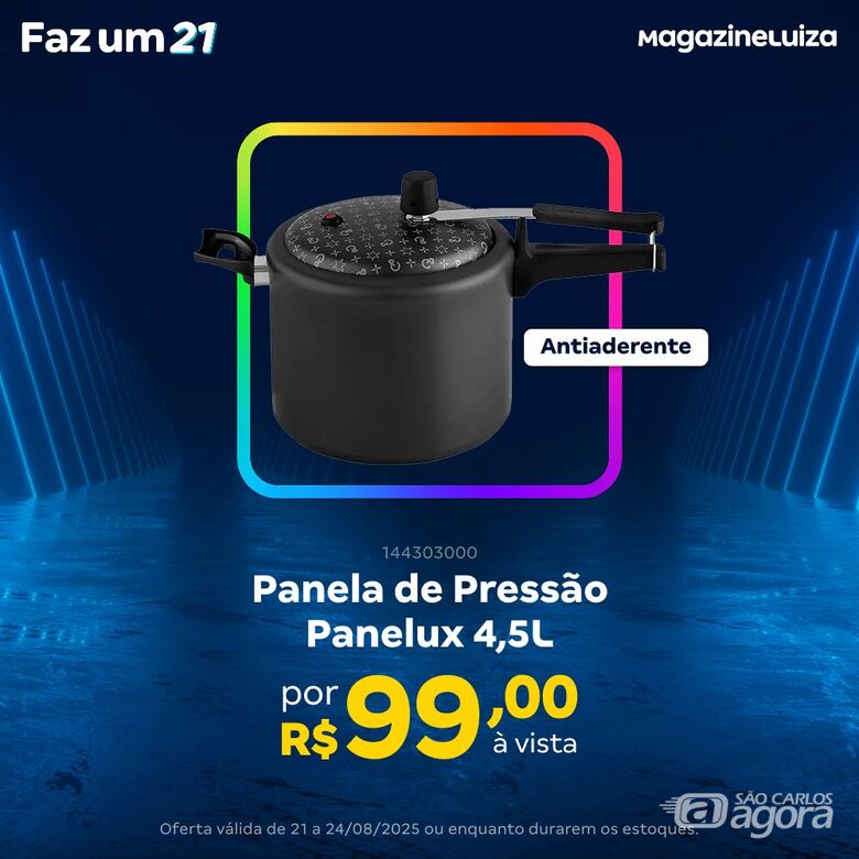 - Panela de pressão 4,5L antiaderente, ferro de passar a vapor Electrolux ou liquidificador turbo por apenas R$ 99,00.