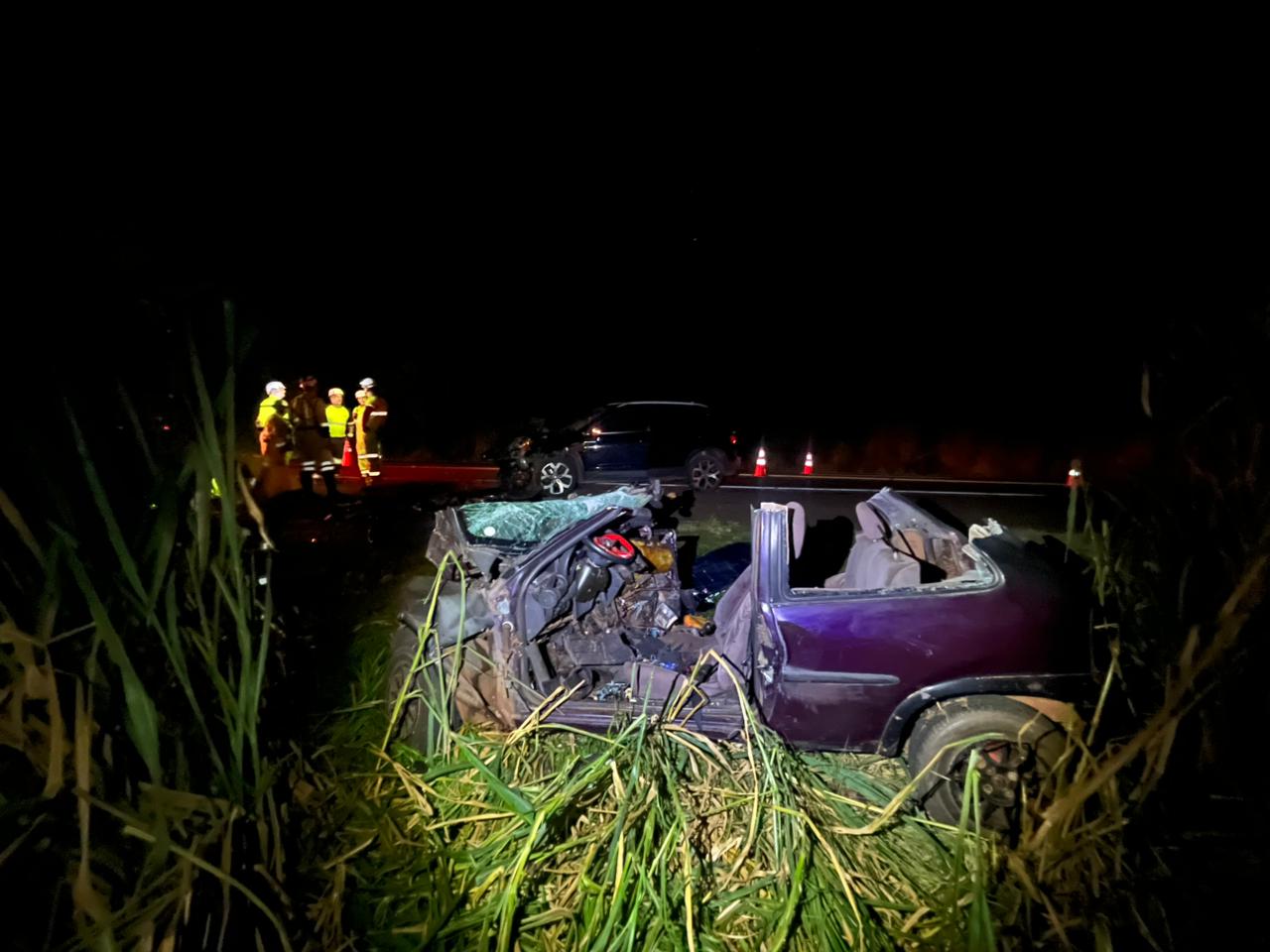 Crédito: Foto: Flavio Fernandes/São Carlos AgoraUm grave acidente entre dois carros deixou dois mortos na noite deste sábado (11), no km 91 da rodovia Comandante João Ribeiro de Barros (SP-255), em Ibaté. O acidente ocorreu próximo ao Rio Jacaré e as vítimas foram identificadas, como Diano de Oliveira Soares de 35 anos, e Rafaela Rodrigues da Silva de 32.