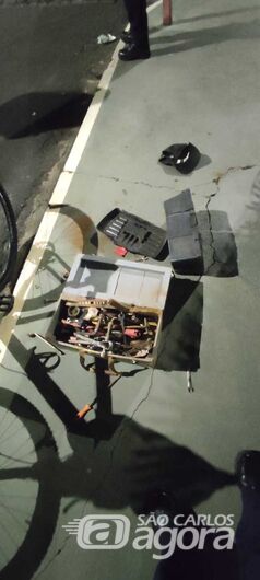 Durante as rondas, os GMs avistaram o acusado que ao ver a viatura se desfez de duas caixas de ferramentas e tentou a fuga. Após a abordagem, confessou o furto e que tais materiais estavam em um veículo cujo proprietário ainda nem tem realizado a ocorrência.
