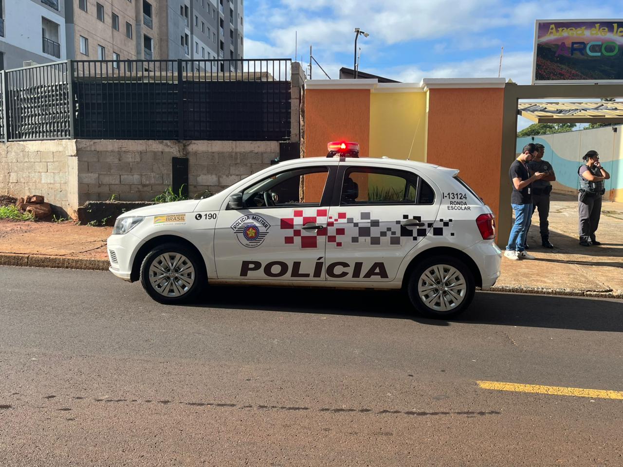 Policiais defronte ao local onde ocorreu o crime - Crédito: Flávio Fernandes Um jovem foi morto a tiros no final da madrugada deste sábado (20) durante uma festa realizada em uma área de lazer no Jardim Cruzeiro do Sul, em Araraquara.