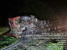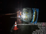 O bitrem envolvido no acidente transportava carga de milho, que se espalhou pelo local após o tombamento.